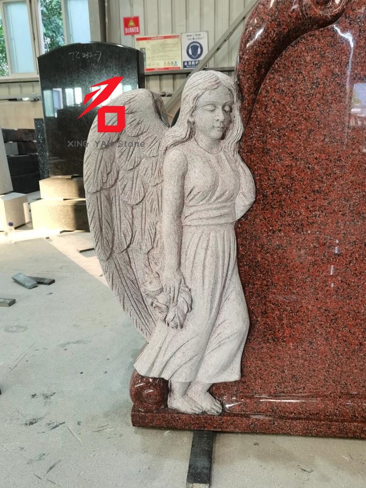 Kidolgozottság: A fő sírkő panel finoman csiszolt, ami tükörszerű felületet eredményez. A bal oldali angyalszobor háromdimenziós faragásos technikával készült, finom és élethűen ábrázolja a szárnyakat, a ruházati textúrákat és a kifejezést. A kézzel csiszolt részletek meleg és sima textúrájúak.